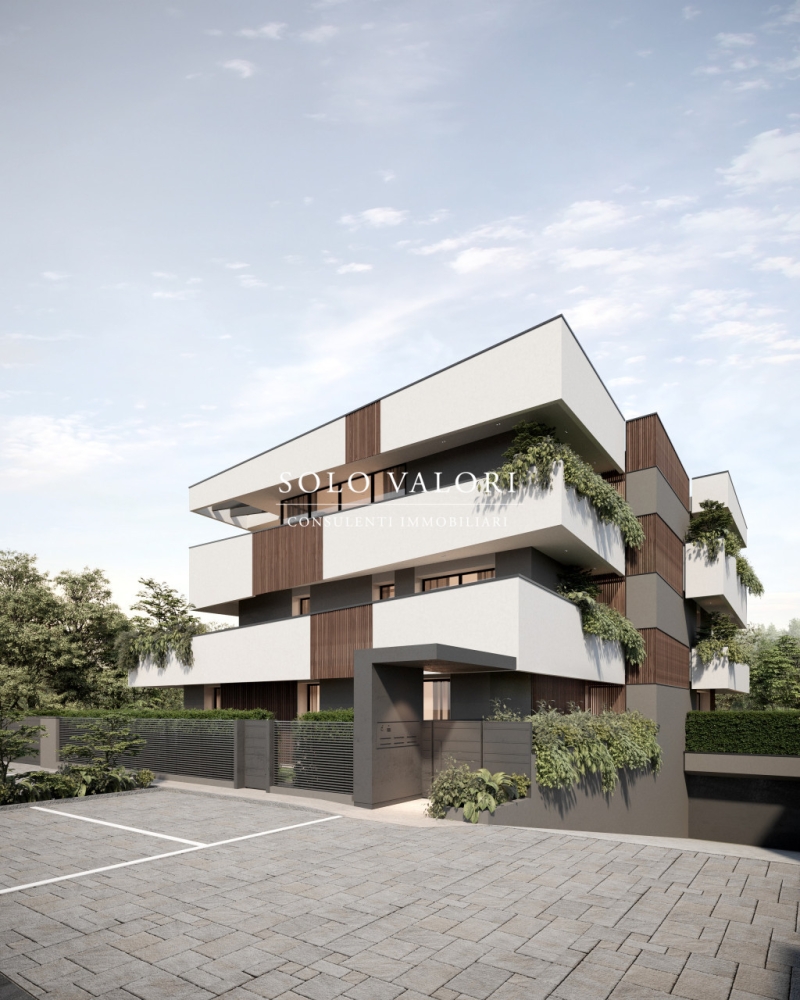 Proponiamo in esclusiva, in palazzina di sole cinque unità, spazioso APPARTAMENTO TRE CAMERE con giardino privato in fase di costruzione. L'unità immobiliare concepita con linee architettoniche moderne è composta da ingresso con cucina/soggiorno, disimpegno, due camere singole, bagno, lavanderia, camera matrimoniale con bagno.