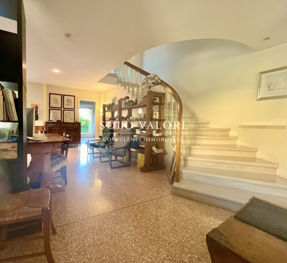 Un'imponente e suggestiva scala in marmo ci conduce al piano primo dove troviamo 3 comode e spaziose camere da letto, un bagno e ulteriore vano utilizzabile come stanza guardaroba o studio.